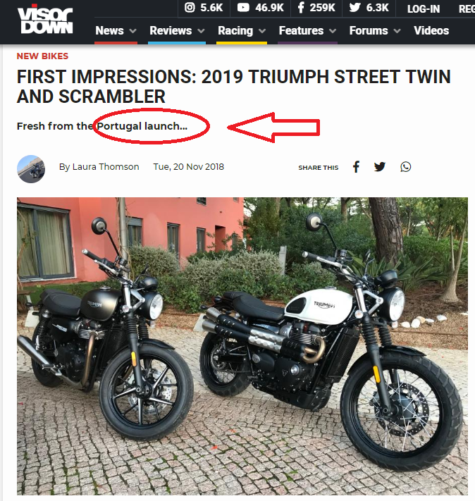 Juntamente com a Street Twin, a Street Scrambler também tem passeado por várias estradas em Portugal.