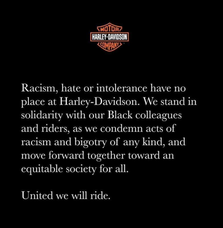 Na sequência da morte do afro-americano George Floyd nas mãos do polícia que o prendeu e que certamente todos viram pela televisão, a Harley-Davidson decidiu fazer algo que não me parece que seja muito habitual nas marcas de motos e deixou uma mensagem que teve rápido reflexo por várias publicações ligadas ao motociclismo...nomeadamente pelo acto de solidariedade para com o movimento que se gerou, assim como de apoio a iniciativas contra o racismo.