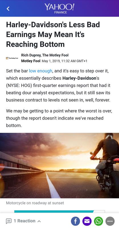 E faz-me alguma confusão a ideia de que a HD esteja a "bater no fundo" porque as vendas num trimestre caíram para números de unidades vendidas idênticas ao que marcas como a ducati ou triumph vendem ao longo de todo o ano.