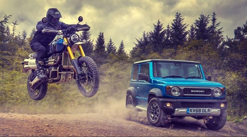 Colocaram numa "espécie de confronto" off-road a Triumph Srambler 1200 e o pequeno Suzuki Jimny.