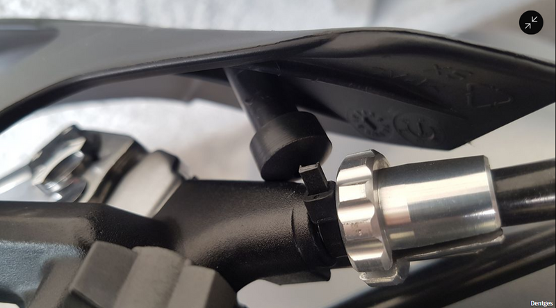 Depois o mecanismo de regulação do windscreen parece ganhar vida própria e sai da posição, levando a que tivessem de colocar, temporariamente, uma abraçadeira plástica até resolução.