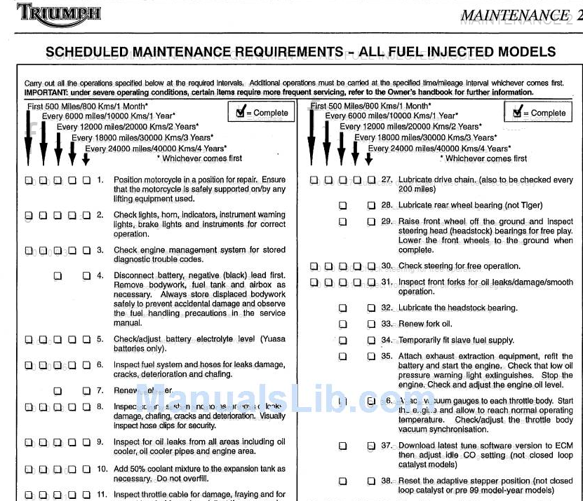 Desconheço o intervalo de verificação das folgas no 800 triple da Triumph.