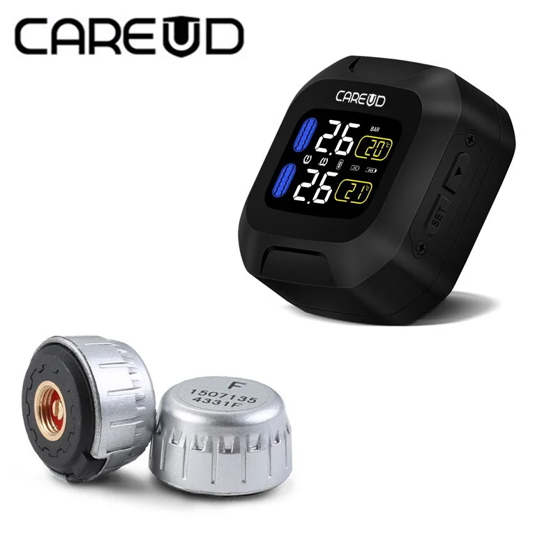 CAREUD 2 M3 Motocicleta Sistema de Monitoramento de Pressão DOS Pneus TPMS Sensor Externo Sem Fio Sistemas de Alarme Display LCD Auto Moto Pneu