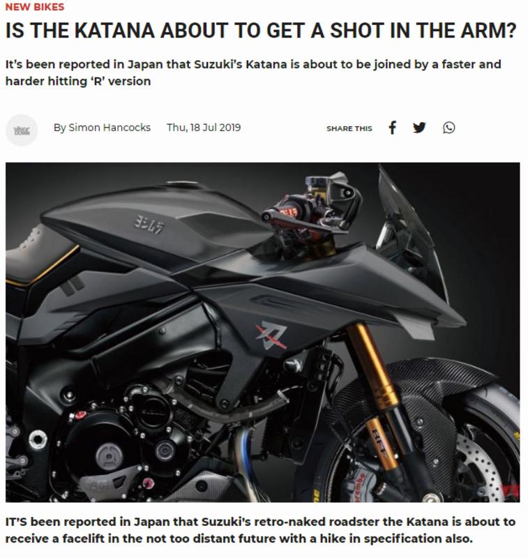 E aquilo que corre é que a Suzuki estará mesmo a planear uma edição limitada de uma "Super Katana", a qual se tornaria numa efetiva versão "R" da moto que foi lançada pela fábrica japonesa este ano e que temos falado neste tópico.