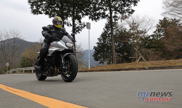 A iluminação é toda em LED e a suspensão compreende garfos KYB invertidos de 43 mm, totalmente ajustáveis ​​e amortecedores ajustáveis ​​de pré-carga / ressalto. As rodas são em Y, jantes fundidas a rodar na borracha Dunlop Roadsport 2 (120/70 R17 dianteiro e 190/50 R17 traseiro)."