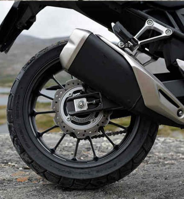 "A jante dianteira de 19 polegadas melhora a estabilidade e a resistência à derrapagem, e os pneus com mais piso asseguram uma forte aderência e feedback"