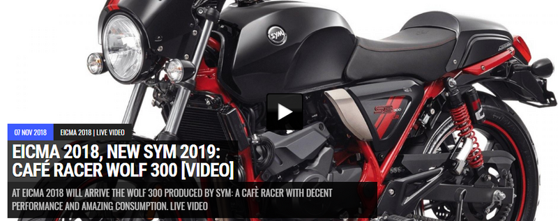 "CAFE TAIWAN Alongside the two absolute novelties NH X and NH T, Sym will also propose the Café Racer Wolf 300 at its stand during EICMA 2018. The version shown during the days of the Milan event will be the definitive version of the bike presented during the last magazine edition to be imported also in the Italian market. To know every detail, watch our live video from Eicma 2018.