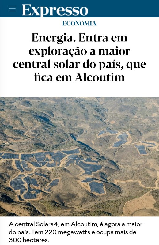 Esta central fotovoltaica tem capacidade de produção 4 vezes superior á então maior do país a da Amareleja e simbolicamente foi dada a autorização de produzir agora como referi noutro tópico, recebeu luz verde do ambiente dia 16. Desde 2012 que foi pensada e 2014 que iniciou o processo de autorização passaram 7 anos. Existem muitos projetos á espera, alguns com capacidade quadruplicada em relação a esta e que só daqui por muitos anos vão ser autorizadas e isto é que um problema, investidores que querem avançar, sem subsídios, nem nacionais nem europeus e esperam uma década por decisões.