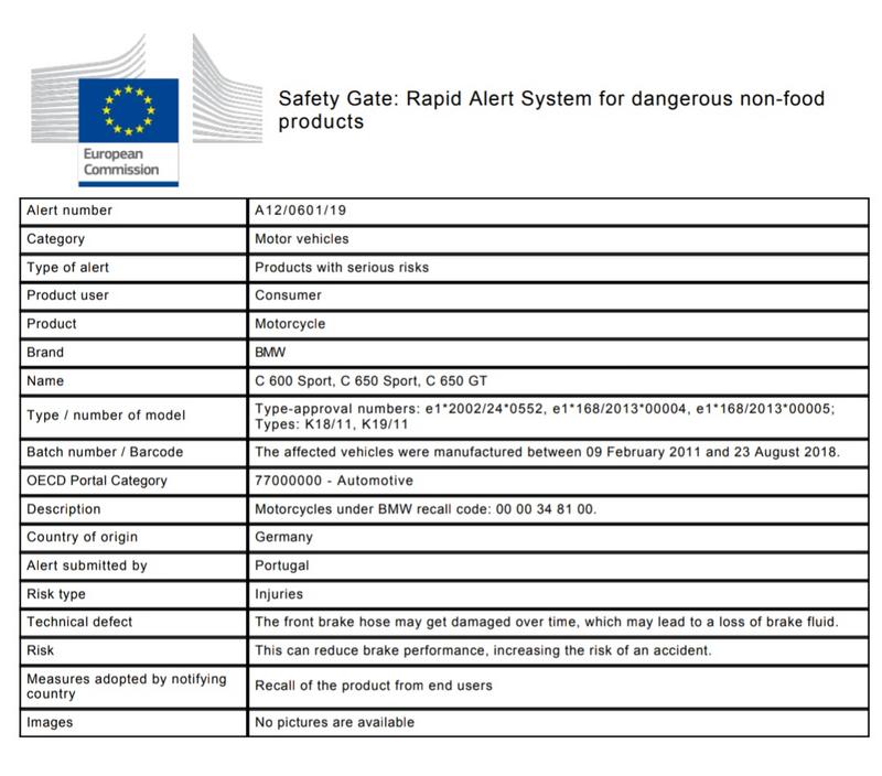 Recall BMW: C600 Sport, C650 Sport, C650 GT