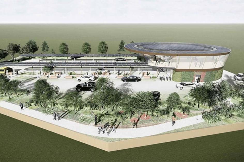 O objectivo passa igualmente por ter em todos os parques adjacentes uma grande extensão de coberturas com painéis solares...que vão ajudar a servir diretamente a energia ao posto de carregamento.
