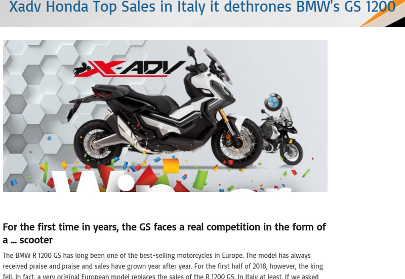 A X-ADV por exemplo, que saiu há coisa de uns 2 anos ou pouco mais, teve (e ainda vai tendo) vendas de tal forma impressionantes que chegou a ser o primeiro modelo, em muito tempo, a destronar a BMW GS como a mais vendida. Isto no gigante mercado Italiano!