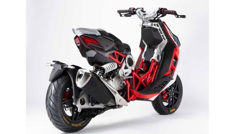 O resultado em termos de look é de facto fantástico e pelo menos a mim transporta-me a ideia para as Bimota Tesi, que têm uma solução que se assemelha a esta.
