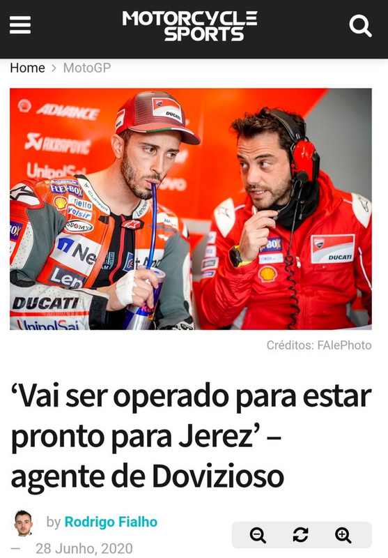 Citação de: JoãoPVCarvalho em Junho 29, 2020, 17:37:12, 17:37Eu não estou assim tão seguro porque afinal daqui a um ano, não só Dovizioso, mas vários pilotos como Crutchlow, Aleix Espargaró, Tito Rabat, e claro que com 43 anos, Rossi , estarão na idade da reforma!O que conta aqui é sobretudo os resultados.E o Dovi tem vivido dos melhores momento da carreira com a ducati nestas últimas épocas.Considerando a dificuldade que é bater Marc Marquez... até são 3 vice-campeonatos quase a saber a campeonato.Seja para o piloto como para o construtor.Não vai para novo, é certo.. mas não deixa de ser o actual "número 2" do mundo.E considerando que mais ninguém consegue a mesma regularidade de resultados com a desmosedici... que razão lógica há para o dispensar?