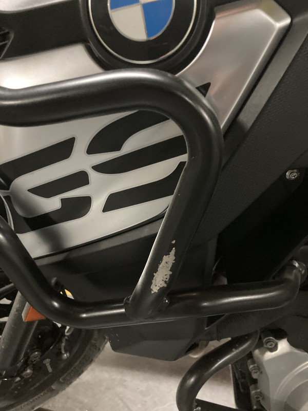 Com este pequena queda, se não paguei, uma potencial reparação caso não tivesse a mota protegida, os barkbusters e as crash bars, não deve andar longe...