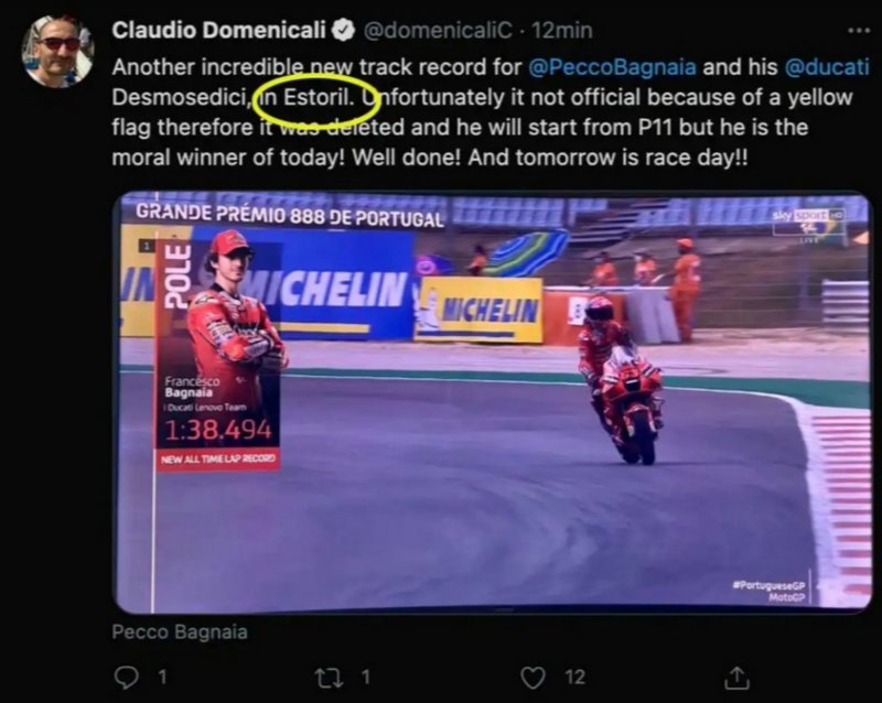 O Bagnaia por segundos não obteve a pole. Porque obteve a melhor volta já fora do tempo regulamentar.