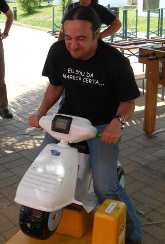 Olha o esforço que foi pegar numa pequena scooter eléctrica, mal saía do sitio...